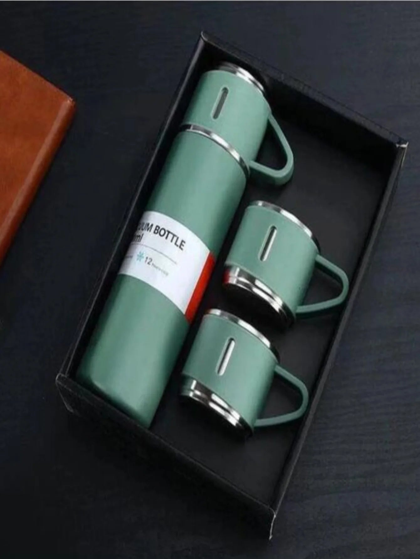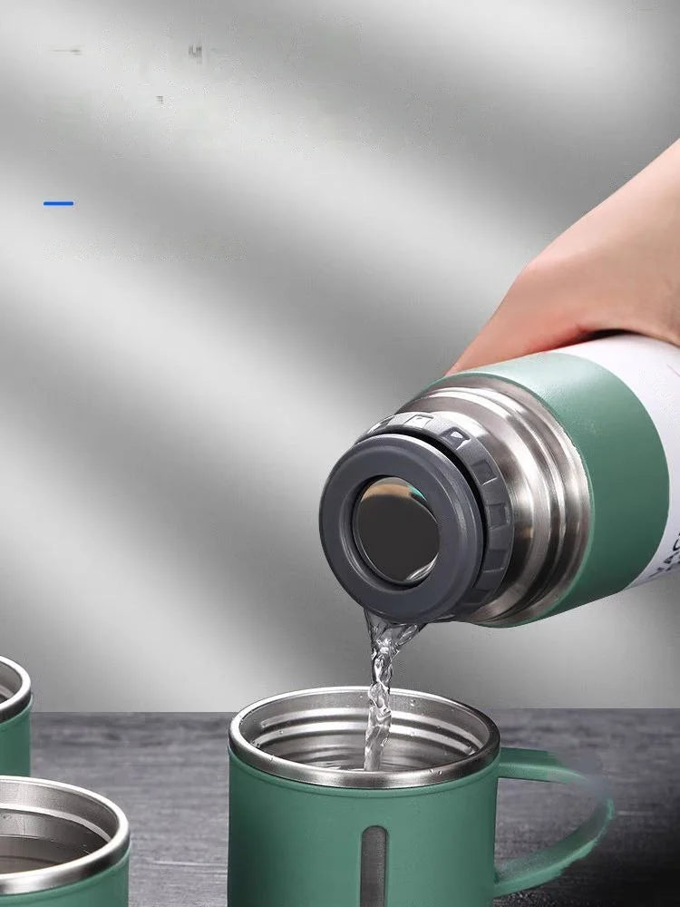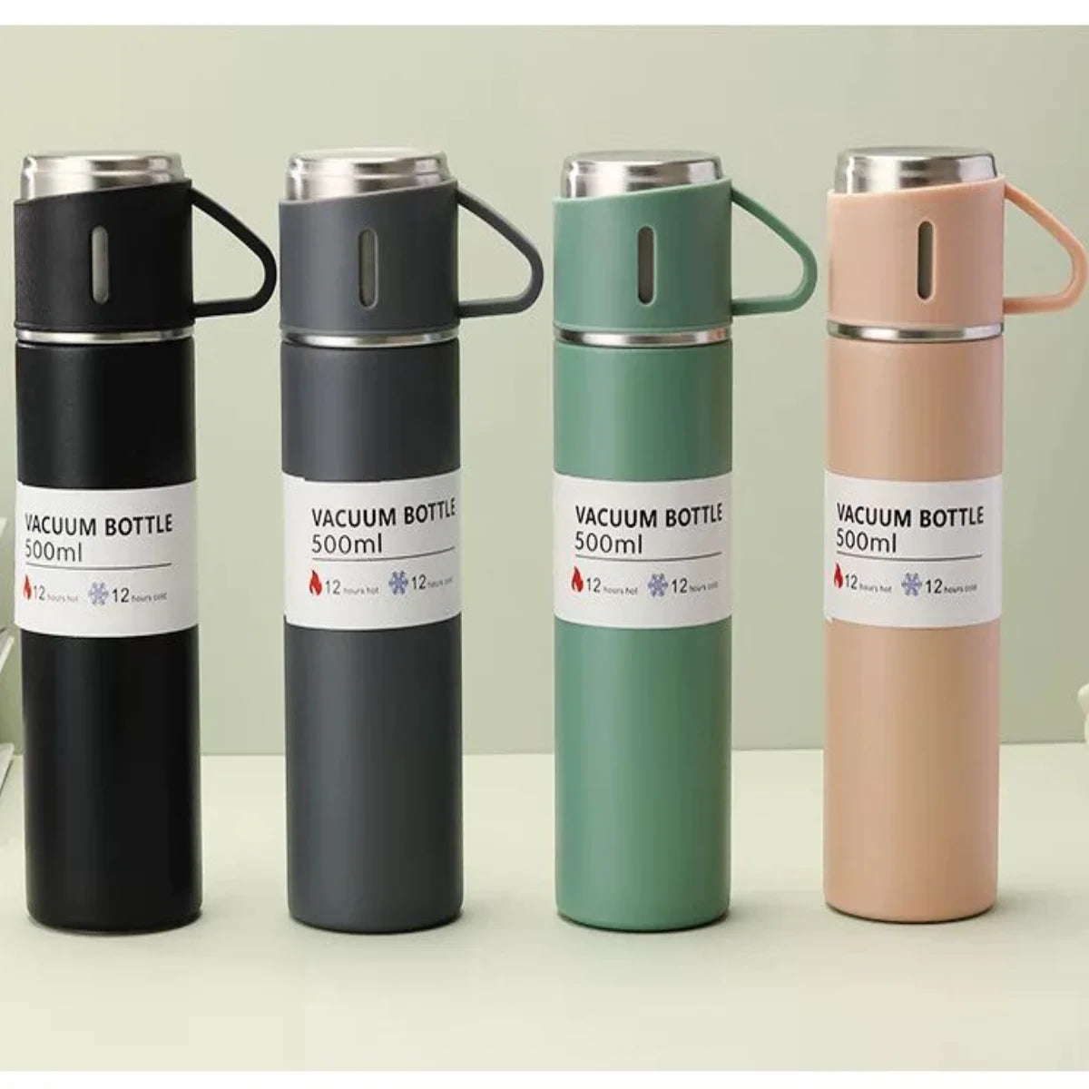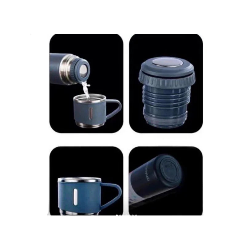 Kit Conjunto Garrafa Térmica Com Tampa & Xícaras Quente Frio Temporada 500ML